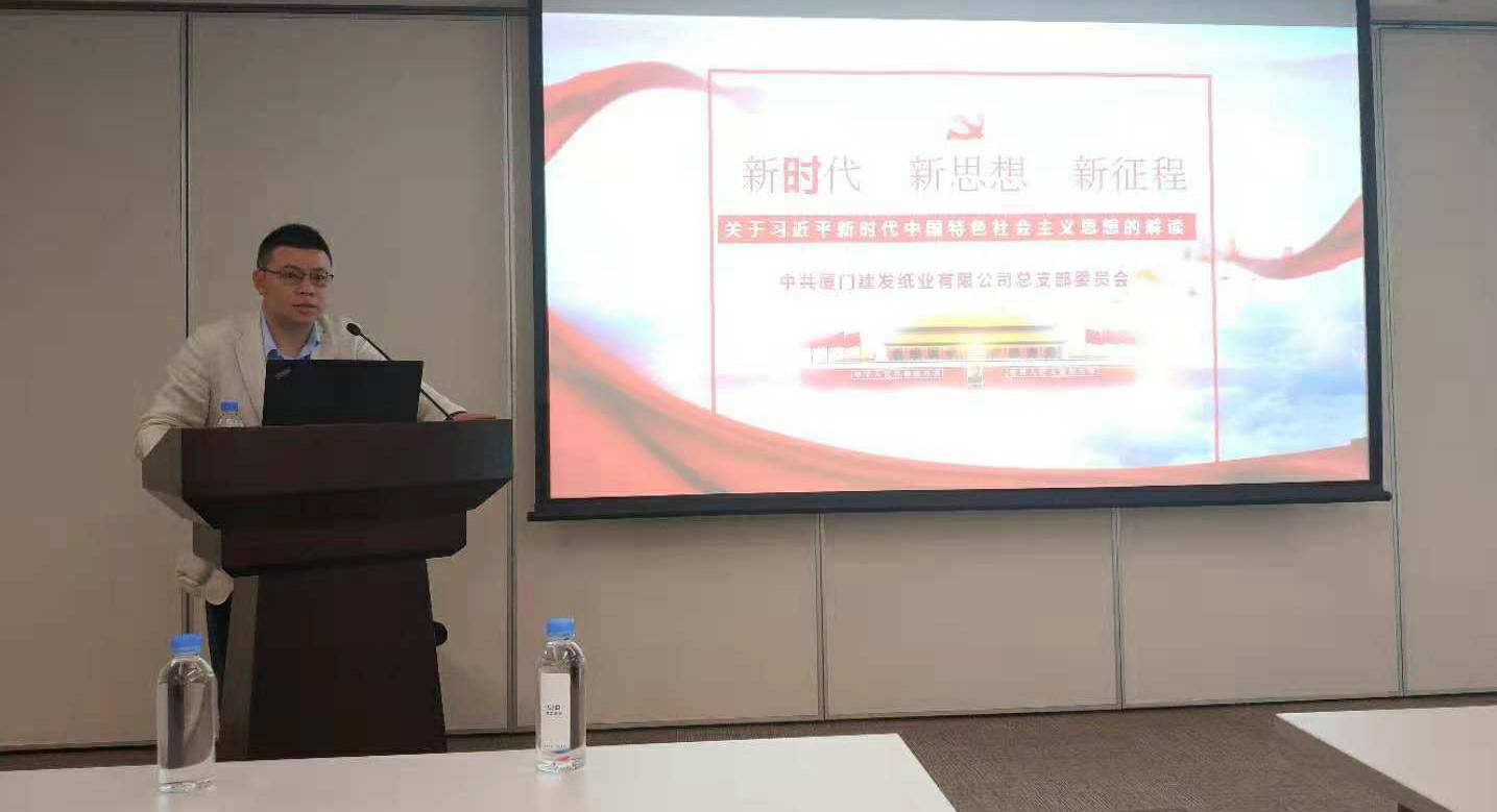 2018年10月23日,开云网页版·官方版在线登入-开云(中国)党总支书记程东方同志在建发大厦23楼4号会议室以《新时代、新思想、新征程——关于习近平新时代中国特色社会主义思想的解读》为主题给纸业公司的党员们做了一次专题党课分享。